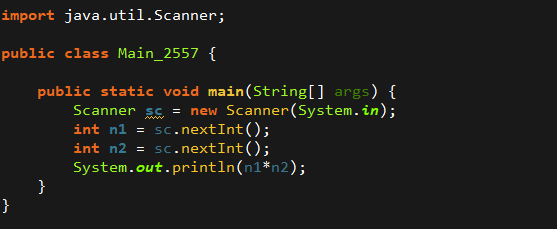 두 정수 A와 B를 입력받은 다음, A×B를 출력하는 프로그램을 작성하시오.