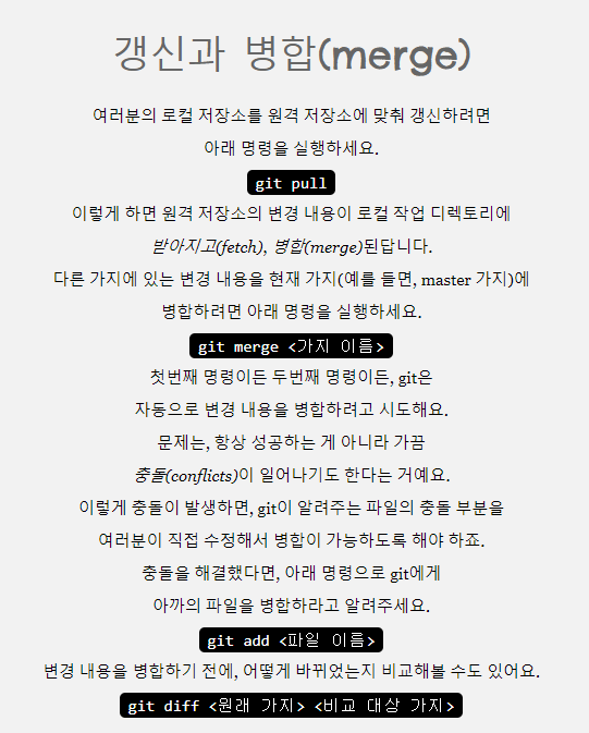 팀원과 함께 프로젝트를 진행한다면 "pull" 명령을 습관화하여 충돌을 줄이는 것이 좋겠습니다!