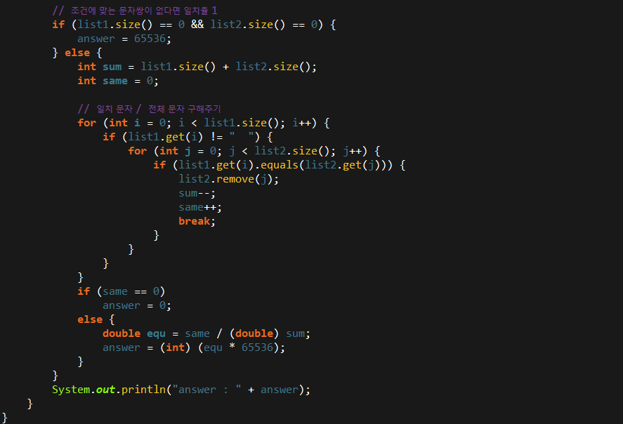 코딩테스트 연습 - [1차] 뉴스 클러스터링 | 프로그래머스