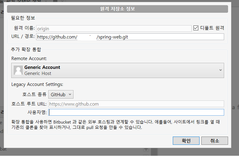 Git Repository URL을 입력하고 원하시는 사용자명을 입력해주세요