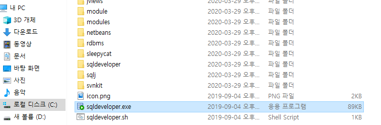 sqldeveloper.exe 파일을 실행시켜줍니다.