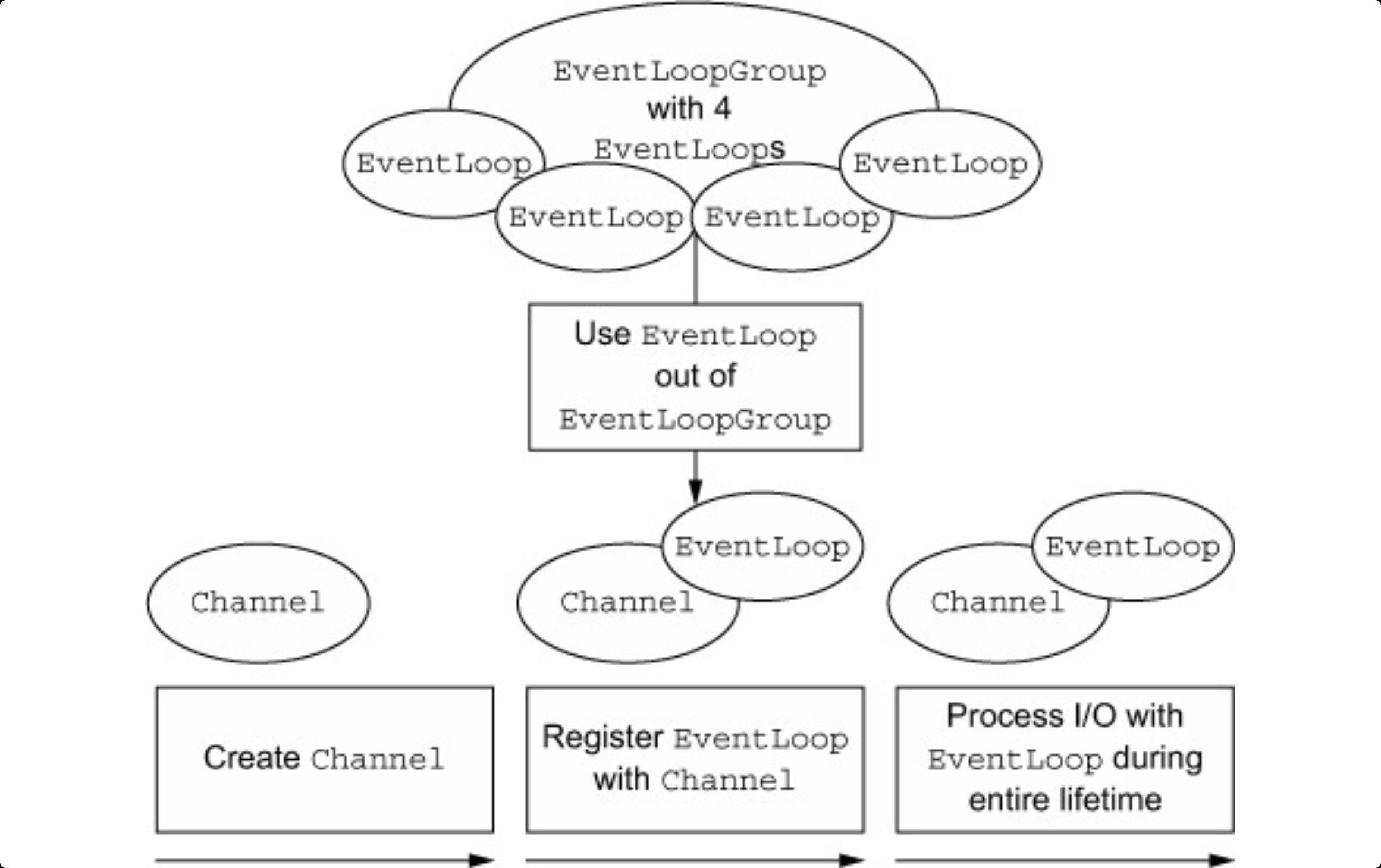 - 하나의 Channel은 수명주기 동안 하나의 EventLoop에 등록할 수 있다.