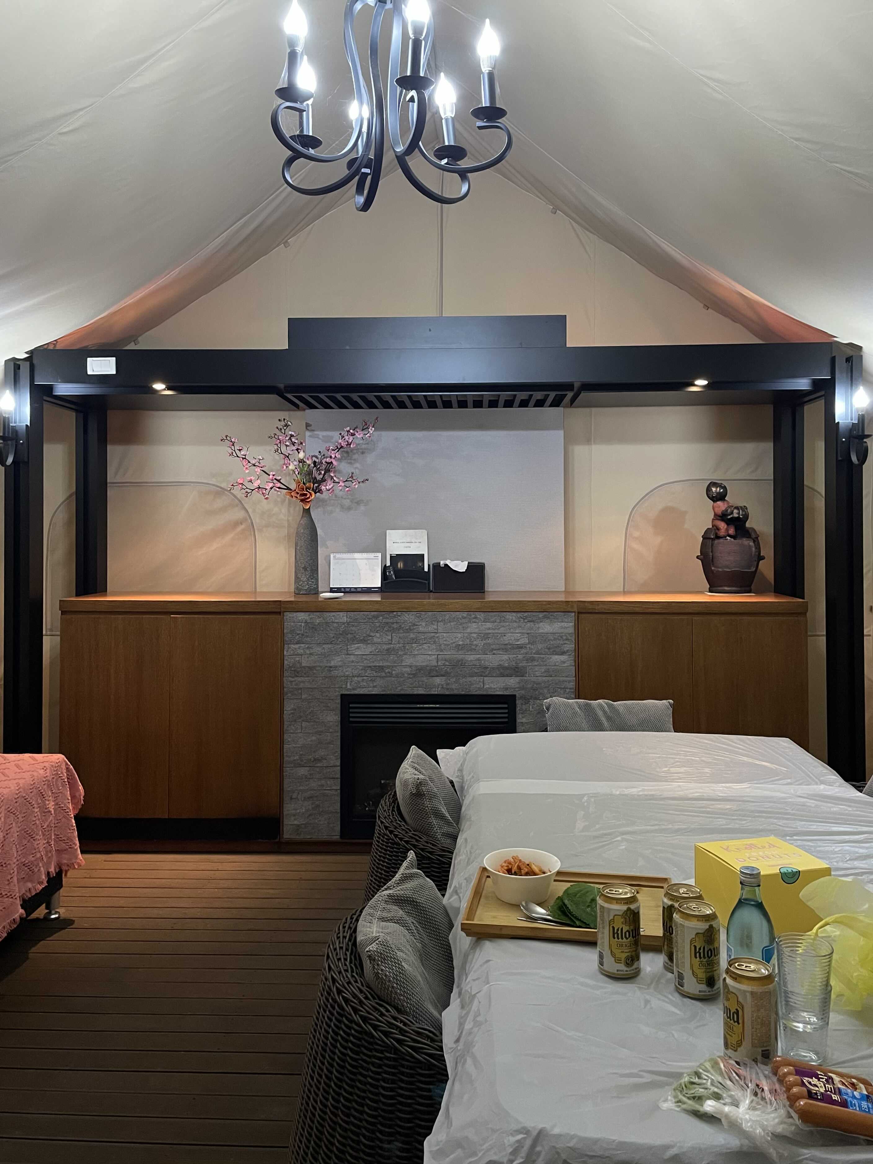 (진짜 벽난로는 아니구요 ㅋ 히터가 나오더라고요)