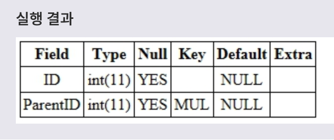 Test2 테이블의 ParentID 필드에 Test1 테이블의 ID 필드를 참조하는 FOREIGN KEY 제약 조건을 설정하는 예시를 살펴보겠습니다.