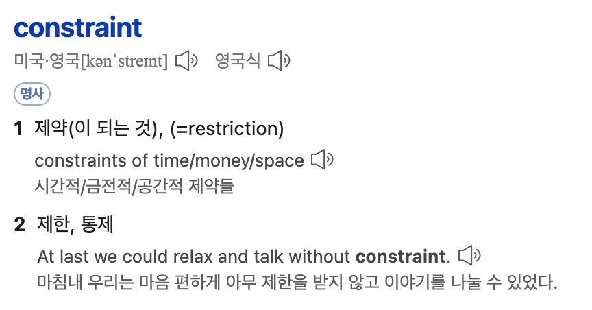 먼저 Constraint란 뜻에 대해 찾아보았는데요.