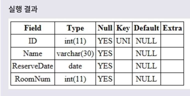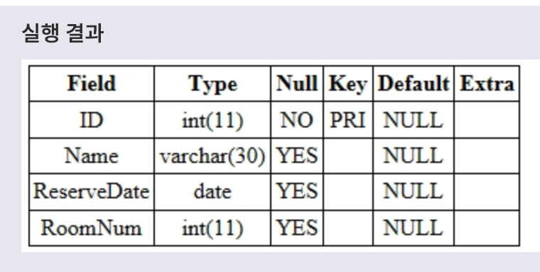 필드이름 필드타입 PRIMARY KEY,