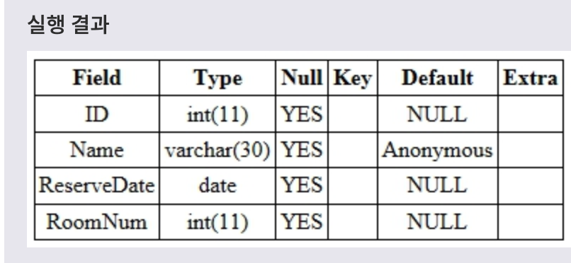 : CREATE 문으로 테이블을 생성할 때 해당 필드의 타입 뒤에 NOT NULL을 명시하면, 해당 필드는 NULL 값을 가질 수 없습니다.