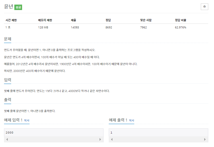 문제에서 주어진 윤년의 기준을 잘 판단해야 합니다.