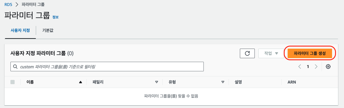 아래와 같이 [수정] 버튼 클릭 후 설정한 파라미터 그룹과 인스턴스를 연결해준뒤 설정 적용을 위해 재부팅을 진행해주자.
