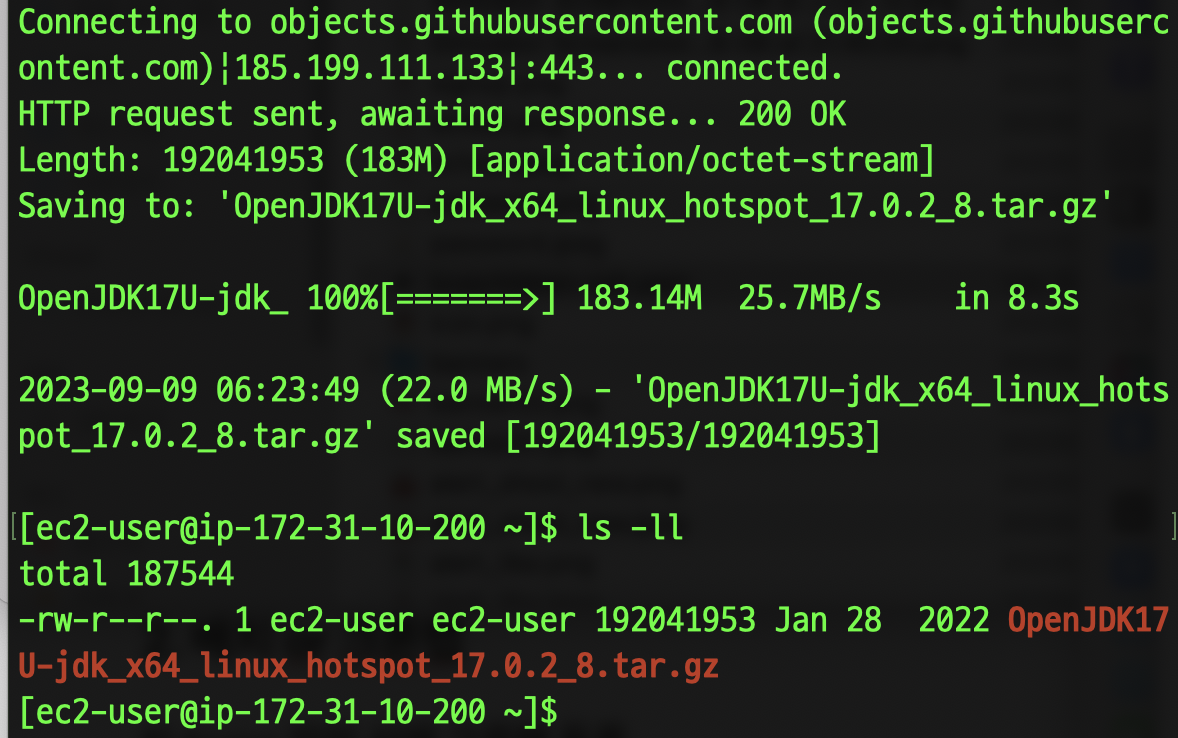 wget https://github.com/adoptium/temurin17-binaries/releases/download/jdk-17.0.2%2B8/OpenJDK17U-jdk_x64_linux_hotspot_17.0.2_8.tar.gz