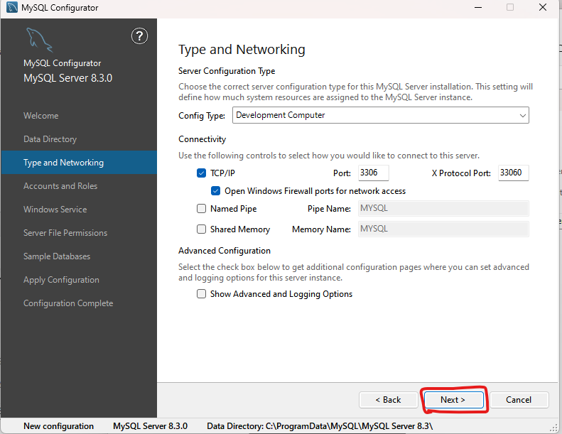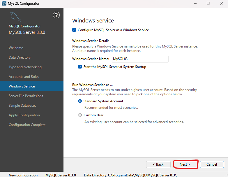 이것으로 Windows 11 환경에서의 MySQL 8.3 설치를 마치겠습니다.