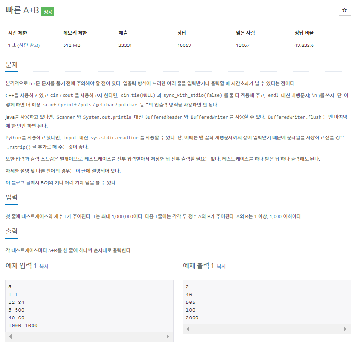 https://www.acmicpc.net/problem/15552