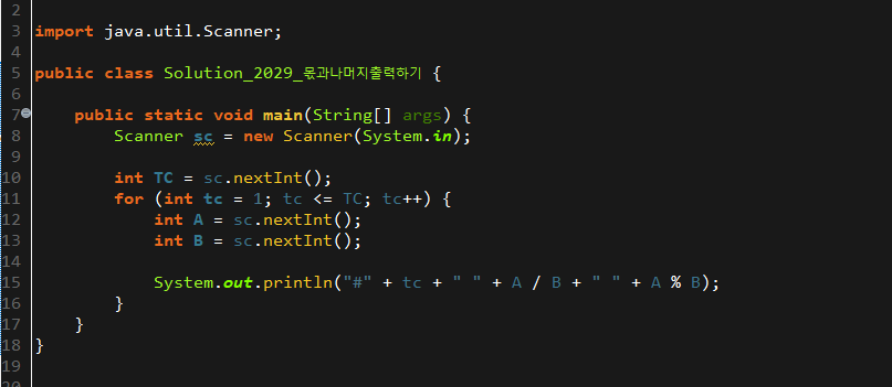 | [SWEA] 2027. 대각선 출력하기 문제풀이 JAVA (0) | 2019.10.09 |