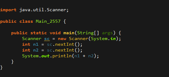 두 개의 수 n1, n2를 입력받아 출력해주면 되는 간단한 문제입니다.