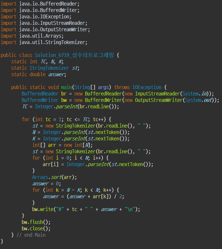 이를 위해서 N-K에서 시작하여 N번째 수까지 선택해주었습니다.