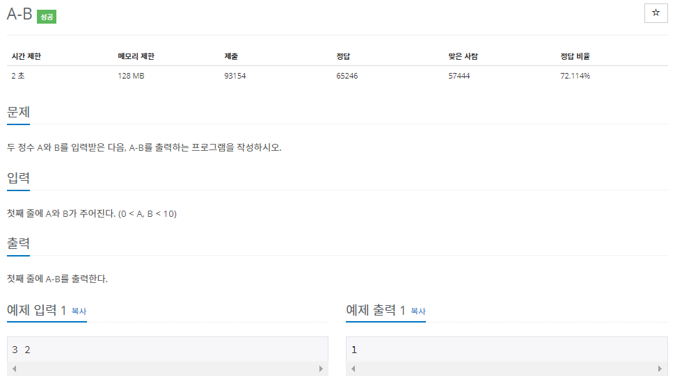 2개의 정수를 입력받아 A-B 연산의 결과를 출력해주면 되는 간단한 문제입니다.