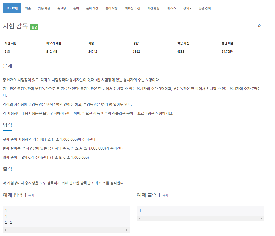 https://www.acmicpc.net/problem/13458