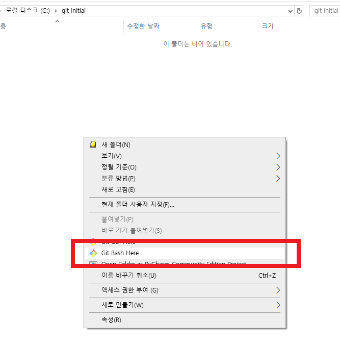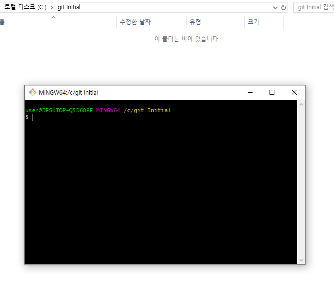 C 에 'git Initial' 이라는 폴더를 하나 만들고