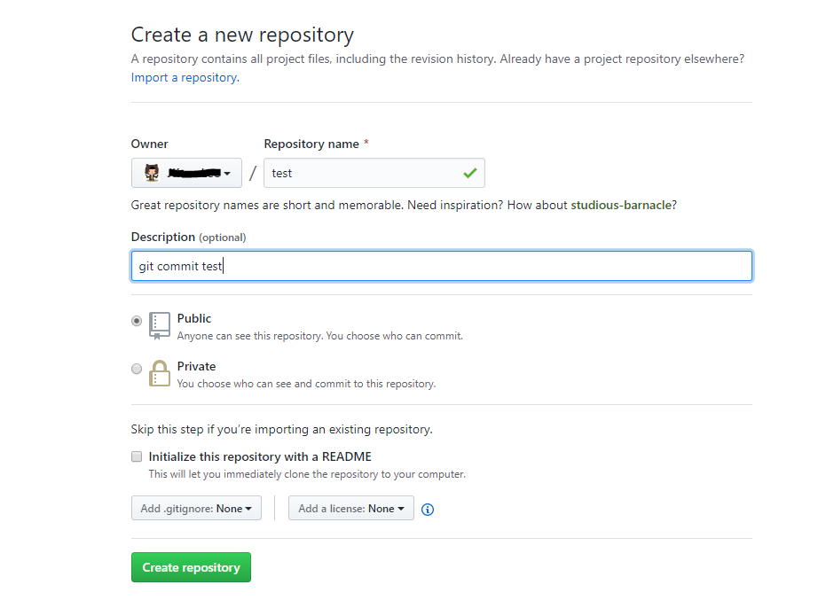 실제 git에 commit 시켜보기 위해서 git으로 이동해 새로운 repository를 만들어줍니다.