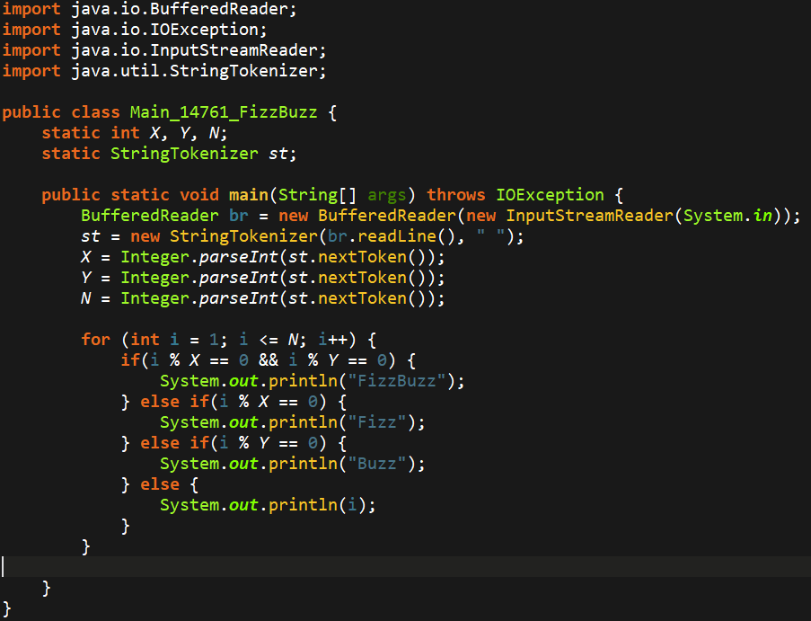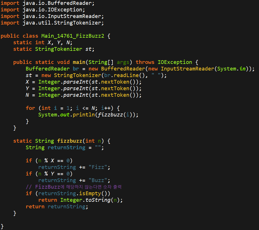 [ 알고리즘 연습 ] 14761. FizzBuzz _ JAVA